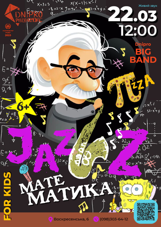 Завітайте до нас на концерт “Джазова математика”, щоб разом допомогти нашому дотепному герою знайти площу піци та поринути у світ математичних фокусів.